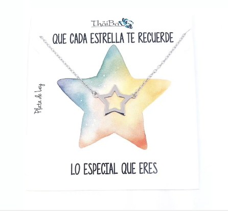 Collar estrella básica calada en plata de ley con cadena extensible a tres medidas.