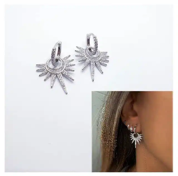 Pendientes rayos en plata de ley y circonitas