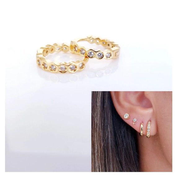Pendientes aritos nido de abeja en plata de ley con baño de oro 14 quilates.